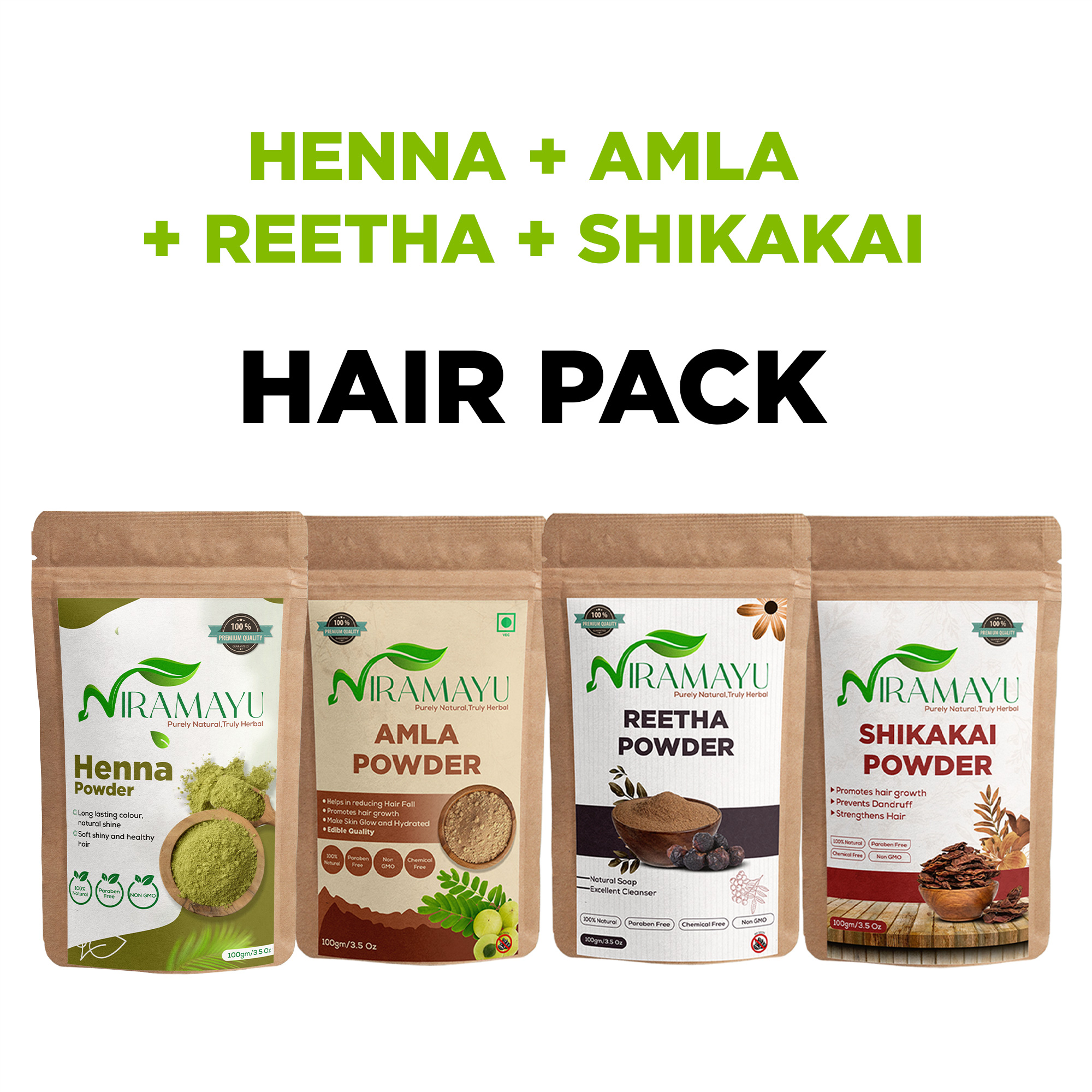- Experience the simplicity and power of Ayurveda in your hair care routine. Mix equal parts of Heena, Amla, Shikakai, and Reetha powders with warm water, curd, or aloe vera gel to form a smooth paste. Apply it evenly from roots to tips and leave it for 30–45 minutes before rinsing with water. Use 1–2 times a week for best results. This timeless Ayurvedic blend has been trusted for generations for its healing and rejuvenating effects. With Niramayu’s premium-quality powders, you get purity, performance, and tradition all in one pack designed to give your hair the care it truly deserves.