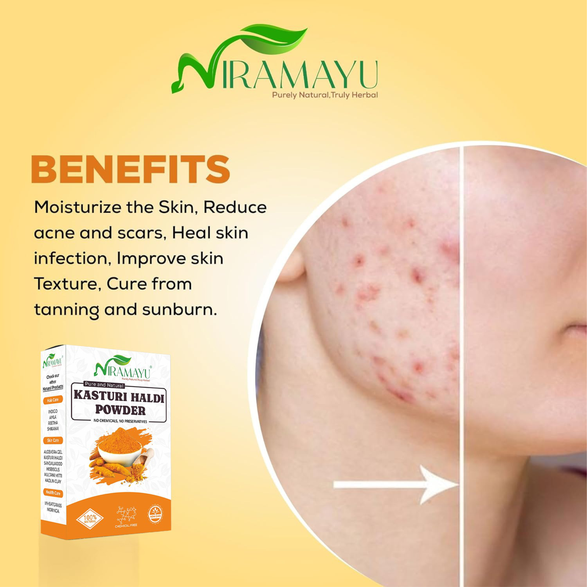 - Safe for All Skin Types – No Yellow Stains – Unlike regular turmeric, kasturi haldi does not stain the skin and is gentle enough for sensitive skin. It’s free from chemicals, additives, and synthetic fragrances – making it safe for both men and women.